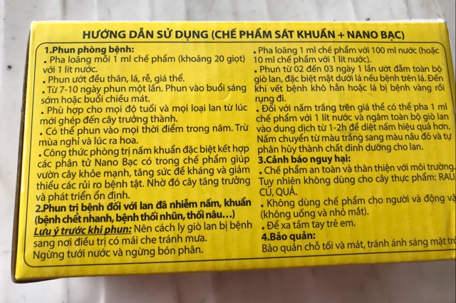 ✔️Đối với lan đã nhiễm nấm, khuẩn: Pha loãng 1ml với 100ml bôi hoặc phun trực tiếp vào lan bệnh. 2-3 ngày thực hiện 1 lần