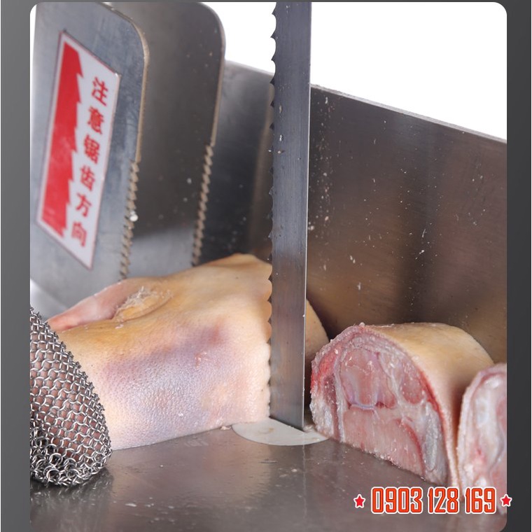 Lưu ý không sử dụng để cưa các sản phẩm thịt có lẫn xương chưa được đông cứng hẳn (sườn tấm, giò heo, cá...) làm giảm tuổi thọ của lưỡi. Tất cả nguyên liệu khi cho vào máy cưa xương cắt thì càng cứng càng tốt để tăng hiệu suất cắt, hạn chế đứt lưỡi cưa.