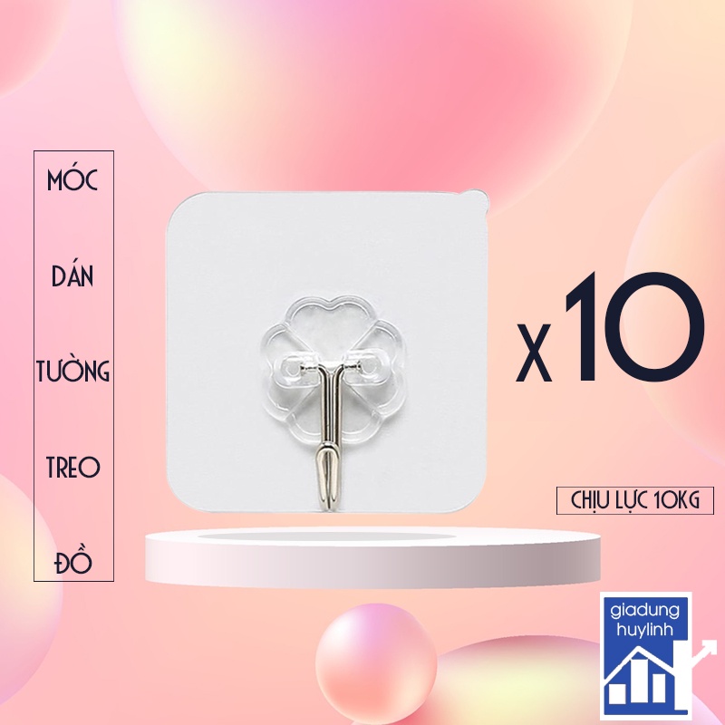Nhà cửa & Đời sống > Sắp xếp nhà cửa > Móc treo || Combo 10 móc dán tường chịu lực siêu dính 10kg - Móc dính tường trong suốt dán siêu chắc 6*6cmCòn hàng