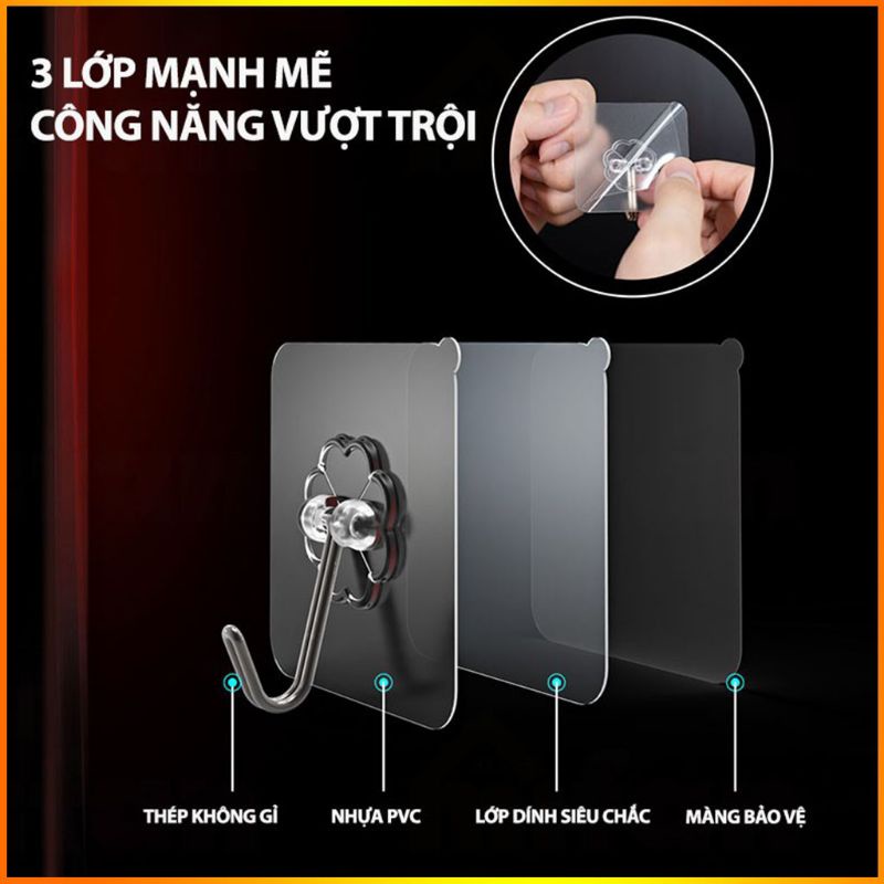 ♘ Móc dán tường Treo Đồ Trong Suốt T10 Có khả năng chịu lực cao treo được khối lượng lớn lên tới 10kg