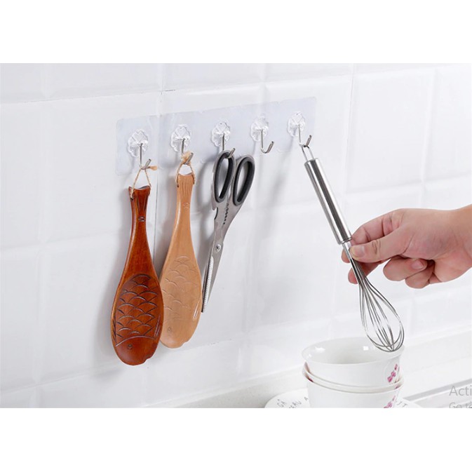 Móc bằng nhựa PVC, chịu nước, có thể dán lên các bề mặt phẳng như gạch men, đá, kính, gỗ. Độ bám dính siêu cao.