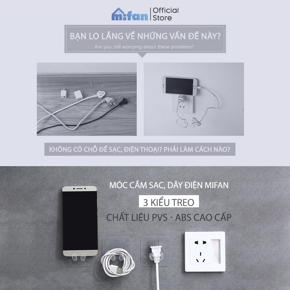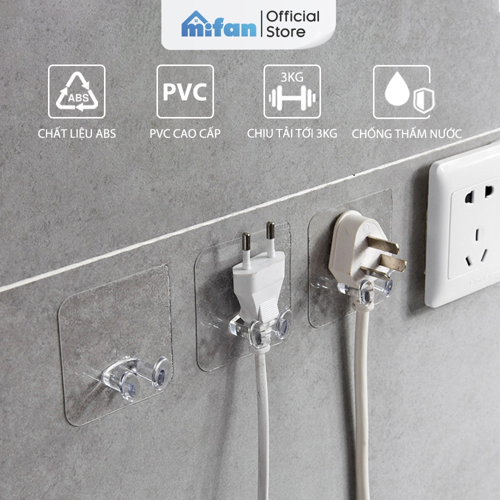 Móc Dán Tường Treo Phích Cắm, Ổ Cắm Cáp Sạc, Kẹp Dây Điện Đa Năng Siêu Chắc - Keo Dày, Nhựa PVC Cao Cấp - MIFAN