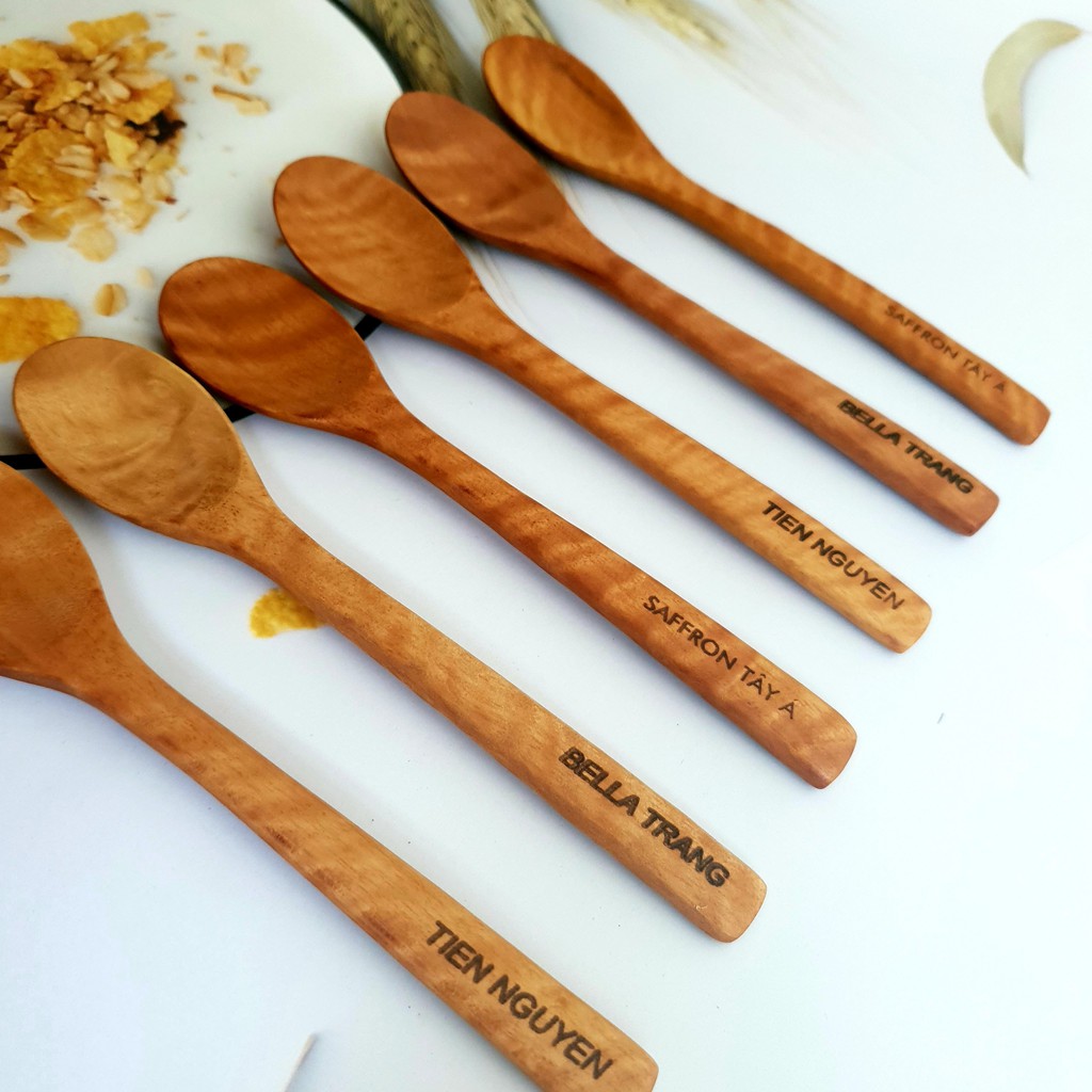 Thìa gỗ Nhãn xuất khẩu khắc chữ ,tên, thương hiệu, logo theo yêu cầu