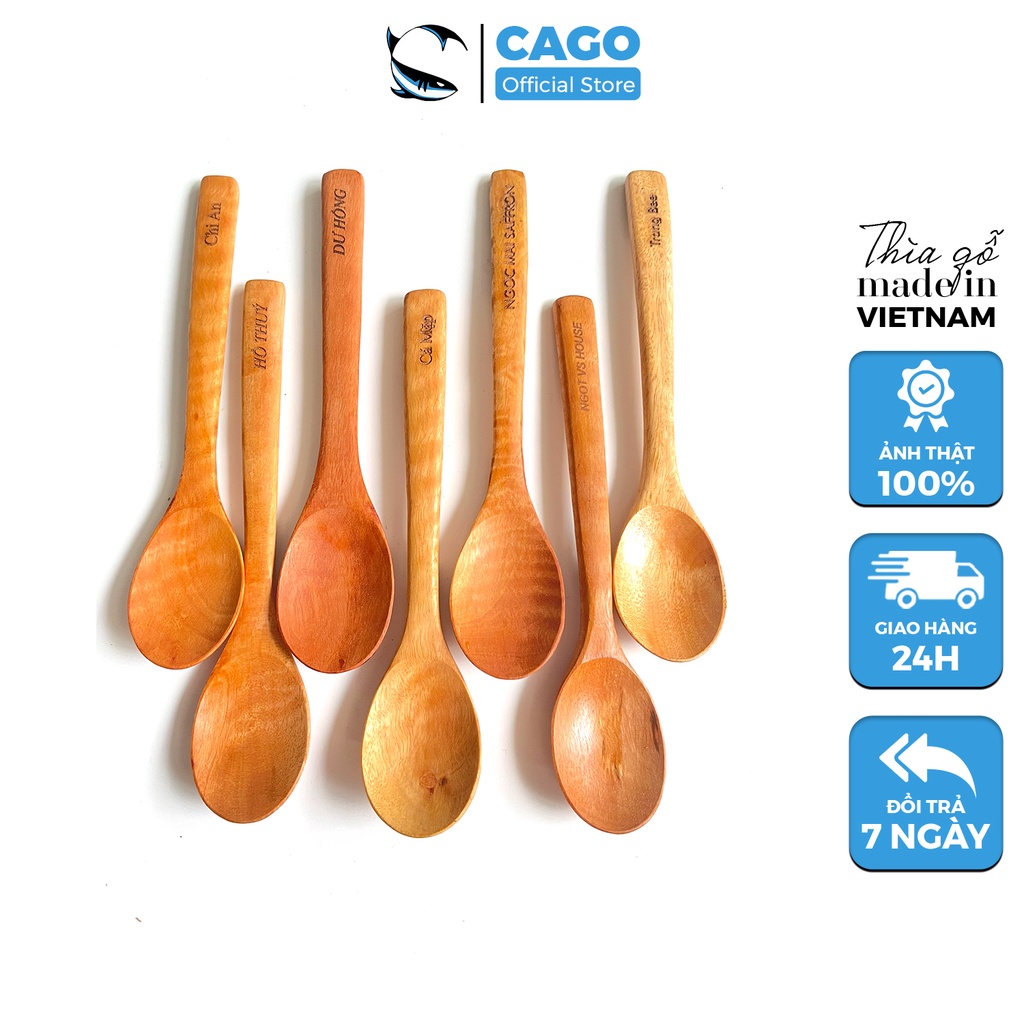 Combo 10 Thìa Gỗ Nhãn Xuất Nhật Khắc Chữ Theo Yêu Cầu - Chính Hãng CAGO