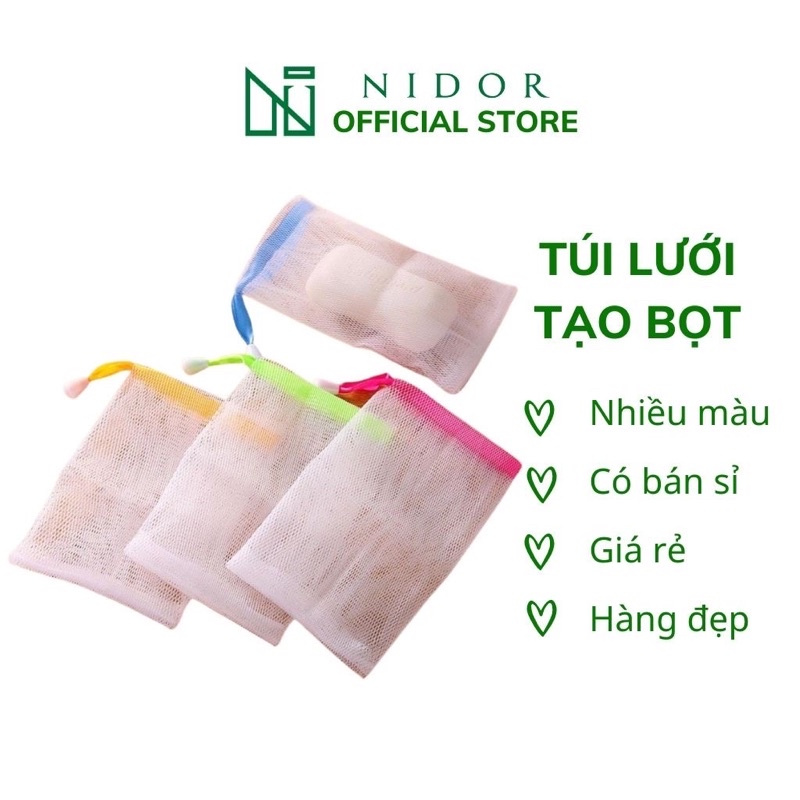 Giới thiệu Combo 10 túi lưới đựng xà bông tạo bọt tiện lợi, 2 lớp, có dây rút nhiều màu