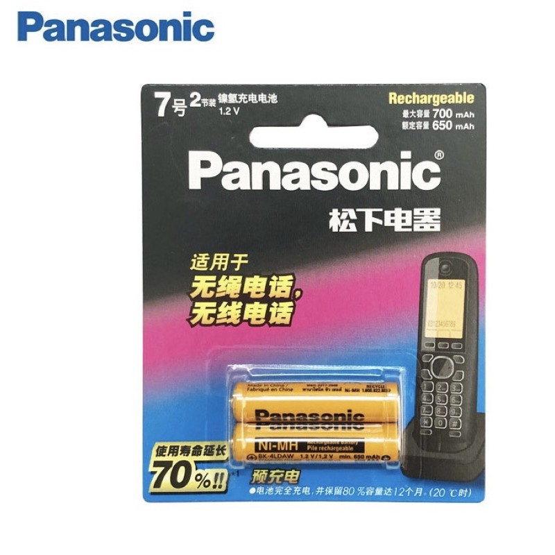 Pin Sạc AAA Panasonic dùng cho các dòng điện thoại không dây và các dòng điện thoại hiển thị màn hình, Là sản phẩm pin sạc Panasonic, sản phẩm được sản xuất trên dây chuyền công nghệ Nhật Bản.