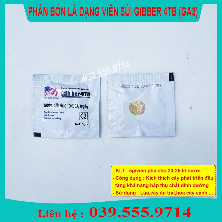 GA3 được đóng dưới dạng viên, mỗi viên có trọng lượng 5gr. Một hộp 20 viên và một thùng gồm 10 hộp, tương đương 200 viên.