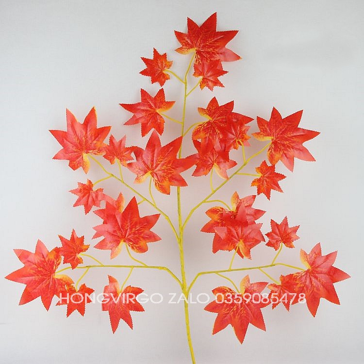Combo 100 Cành Lá Phong Đỏ - Cành Lá Phong Giả Làm Cây Giả 1 cành 5 nhánh 25 lá - GIÁ TỐT