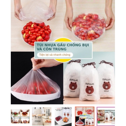Combo 100 Màng Bọc Thực Phẩm Có Chu, túi gấu popular broun co giãn