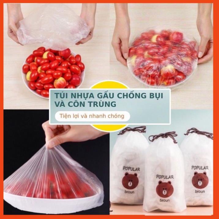 Combo 100 Màng Bọc Thực Phẩm Có Chun Thảo Nguyên túi zíp đựng thực phẩm, túi gấu popular broun co giãn BN