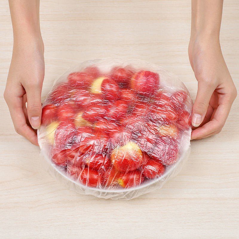 Combo 100 Màng Bọc Thực Phẩm Có Chun Co Dãn Tái Sử Dụng Được Kèm Túi Gấu- Dùng cho mọi hình dạng kích thước : Bát, đĩa, xoong, nồi, nải chuối, dưa hấu, rau bắp cải...