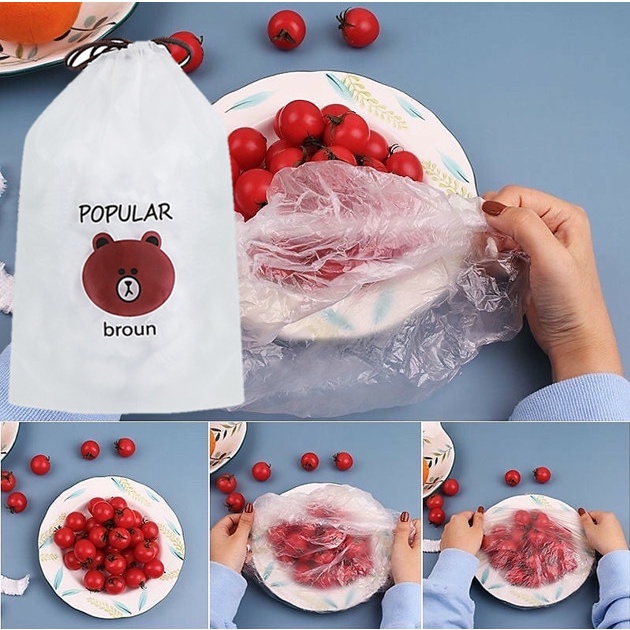 Nhà cửa & Đời sống > Dụng cụ nhà bếp > Màng bọc thực phẩm || Combo 100 Màng Bọc Thực Phẩm Có Chun Co Dãn Tái Sử Dụng Được Kèm Túi GấuSo sánh giá ×