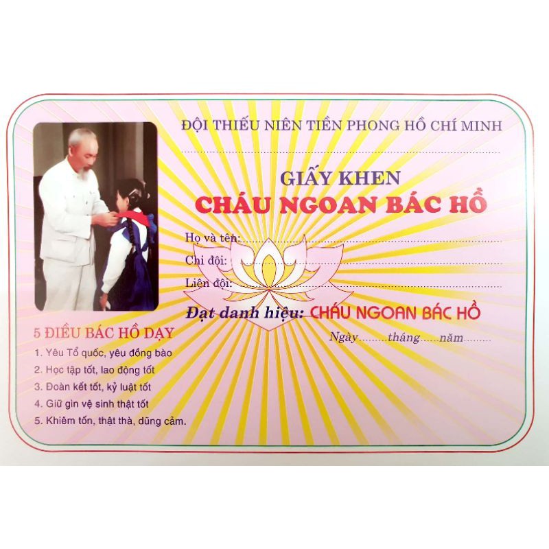 Giới thiệu [ combo 100 tờ ] Giấy khen cháu ngoan Bác Hồ, Dày đẹp