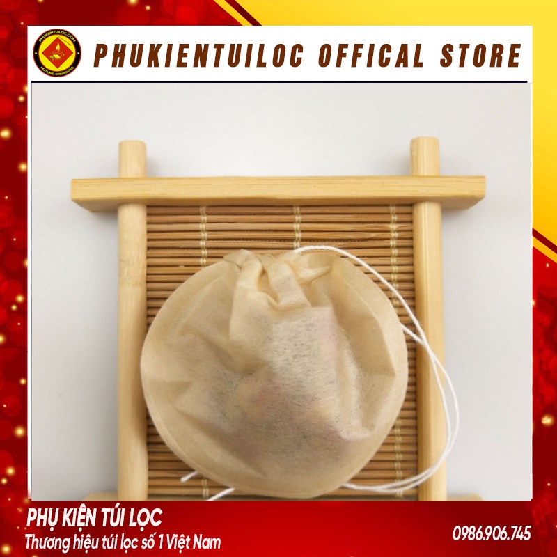 Combo 100 túi lọc giấy hình trống có dây rút lọc trà hoa, trà bột, cafe, bột thảo dược... Phukientuiloc.com
