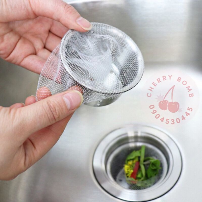 Combo 100 Túi Lưới Lọc Rác Loại Dày Đẹp Bồn Rửa Chén, Bát - Dạng Sợi Mềm Có CHUN ÔM Miệng Túi