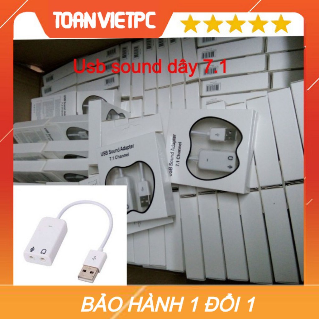 Cáp âm thanh USB 7.1 dùng trong trường hợp máy tính bị hỏng cổng sound-âm thanh mà bạn ngại mang đi sửa chữa vì nhiều lý do khác nhau. Chất lượng âm thanh 7.1 cực chất, cực hay. Đây là một trong những phụ kiện nên có của chiếc máy vi tính nhà bạn, nhất là những bạn thích hòa mình vào thế giới âm nhạc.ĐẶC ĐIỂM NỔI BẬT