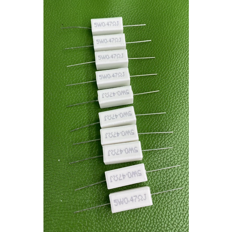 COMBO 10CON Điện trở cắm sứ trắng 5W 0.47R 0R47. 0,33R. 0.22R 5% dáng nằm