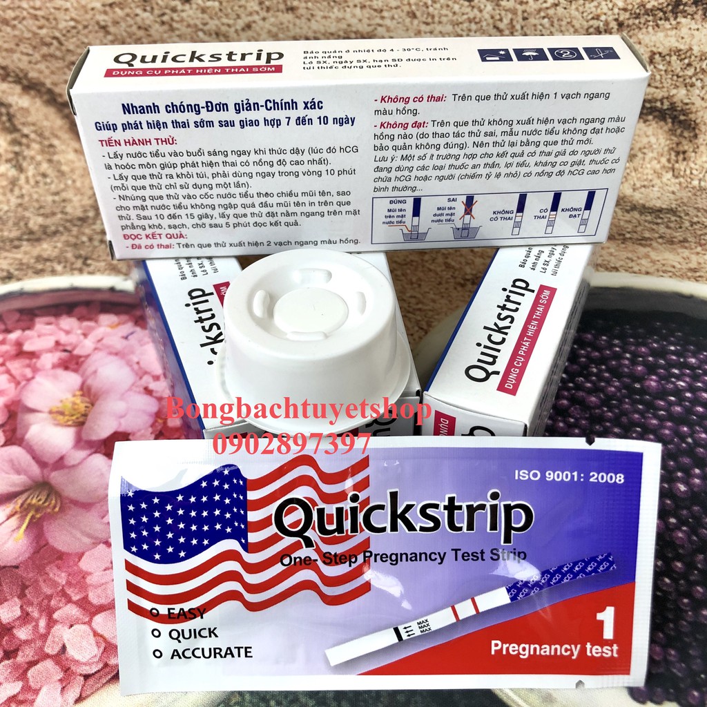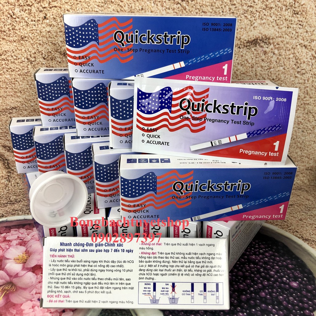 Combo 16 Que Thử Thai Quickstrip có in hình lá cờ " NHANH CHÓNG - ĐƠN GIẢN - CHÍNH XÁC - GIÁ RẺ "