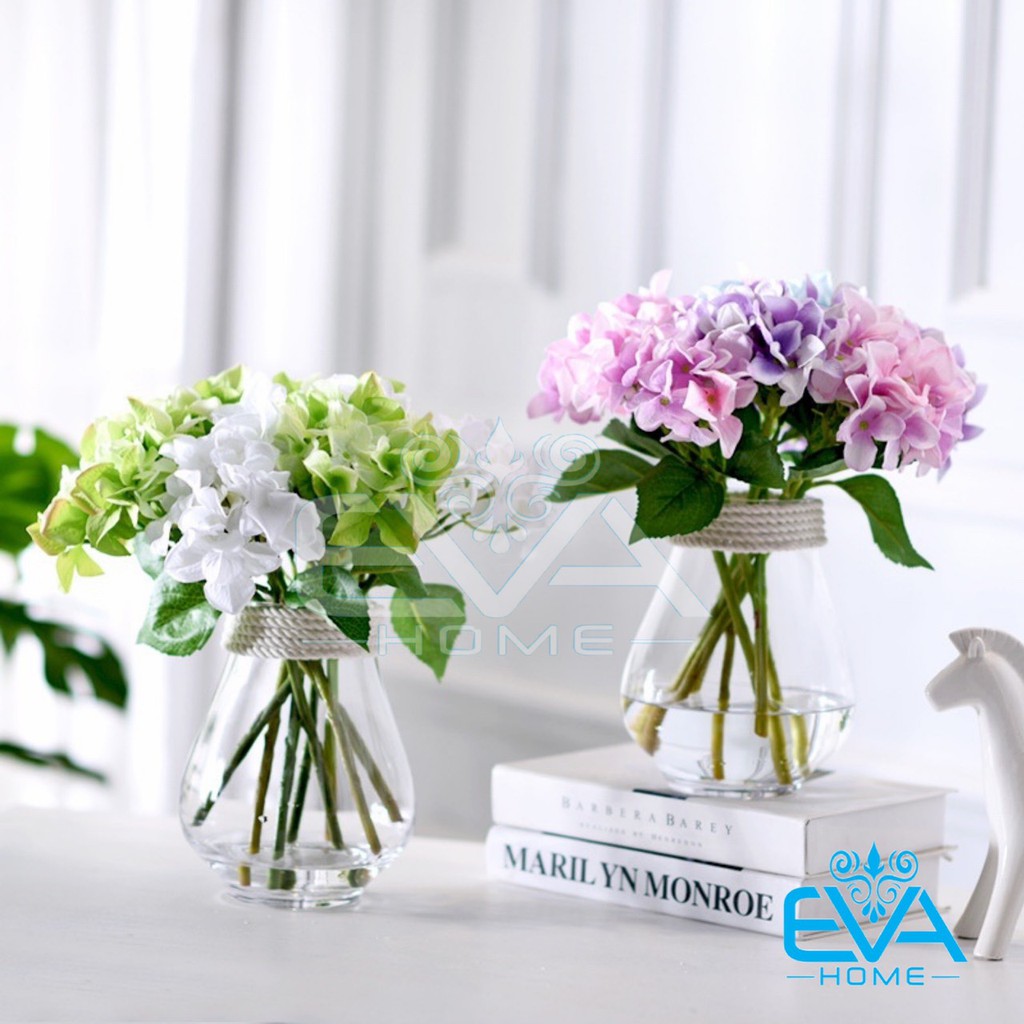 Combo 2 Bình Bông Lọ Hoa Thuỷ Tinh Dáng Bầu Dục Lớn Và Nhỏ Tặng Kèm Dây Bố Trang Trí M1313