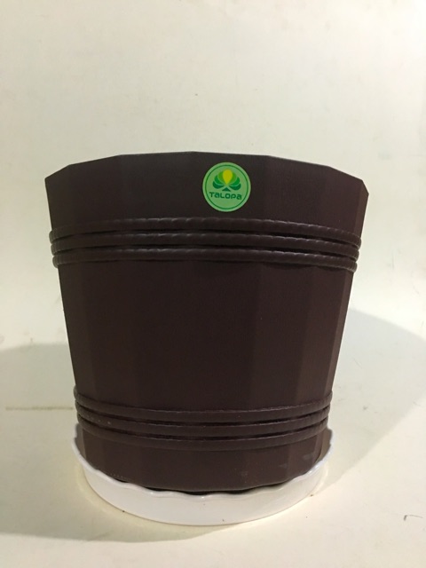 Nhà cửa & Đời sống > Làm vườn > Chậu cây || Combo 2 Bộ Chậu Nhựa Tròn Kiểu Dáng Thùng Gỗ, Chậu Để Bàn + Tặng Đĩa Lót (17x14x14)Còn hàng