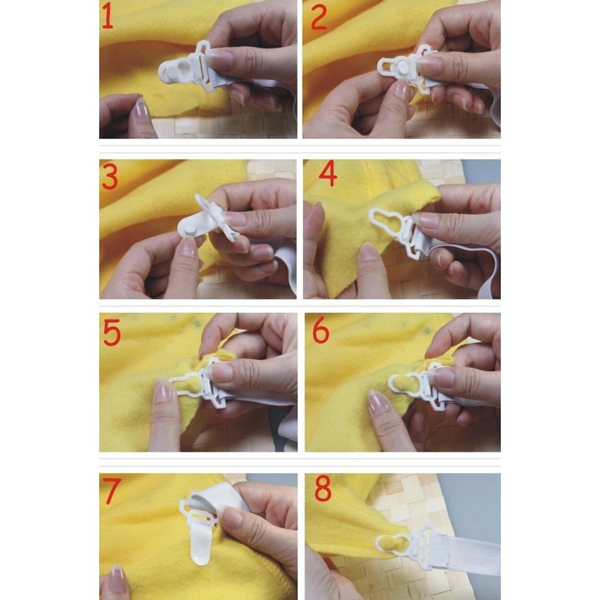 - Chất liệu: hai đầu kẹp bằng nhựa cứng được nối bằng dây thun có độ co giãn tốt