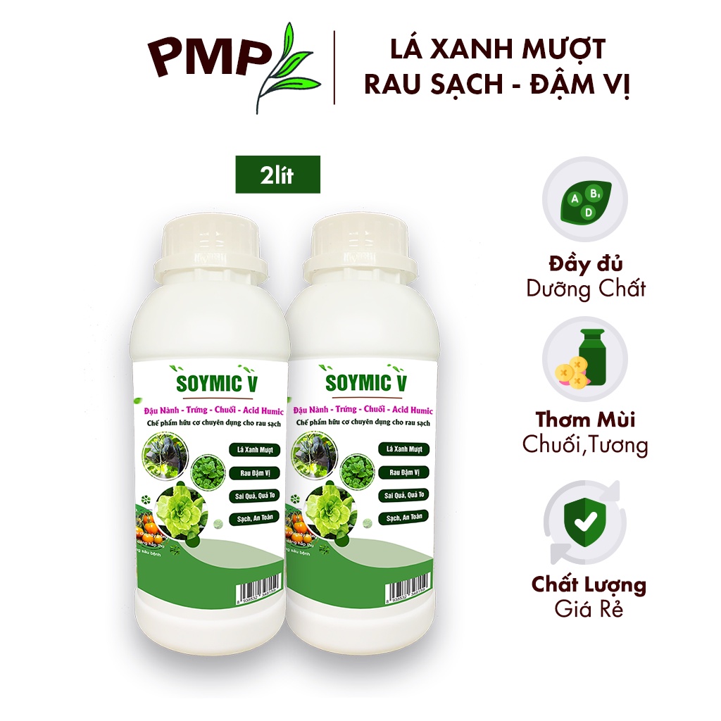 Giới thiệu Combo 2 Chai Phân SOYMIC V PMP Siêu Phân Bón Ủ Vi Sinh Từ Đậu Nành, Trứng, Chuối, Humic, Vi Lượng Cho Rau Sạch