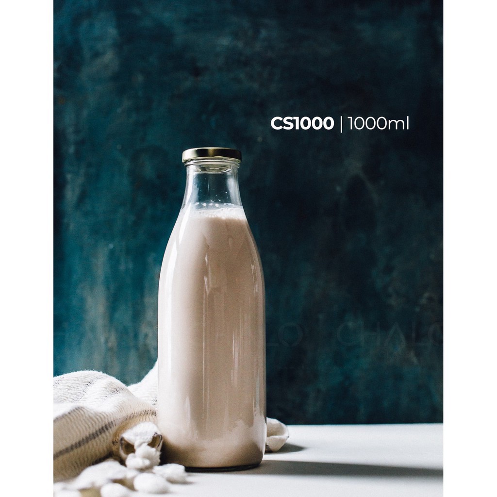 Chai thủy tinh đựng sữa nắp kim loại 1000ml sở hữu chất liệu thủy tinh trong suốt và dày dặn.Sản phẩm được sản xuất trên dây chuyền & công nghệ hiện đại cho phép đạt chất lượng hoàn hảo, đã chinh phục thành công thị trường nội địa Trung Quốc.