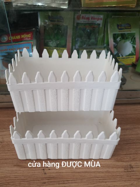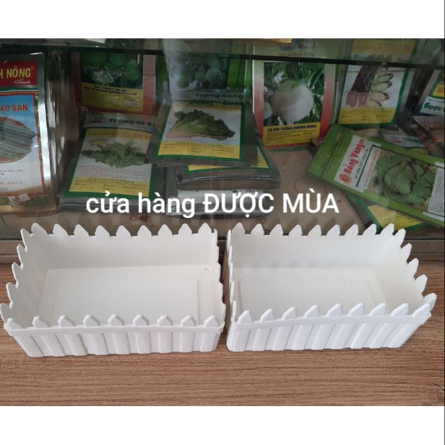 Combo gồm 2 chậu hàng rào nhỏ như hìnhKich thước: dài 20cm, rộng 10cm, cao 9cm