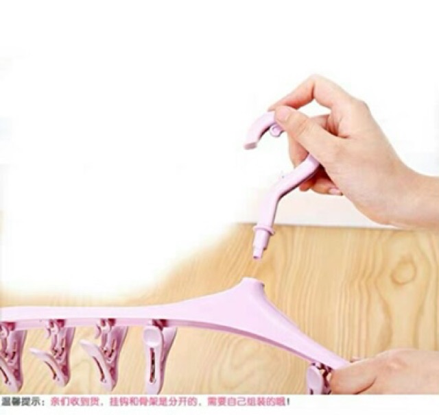 Móc gồm 8 chiếc kẹp nhỏ dùng để phơi khăn tay, tất, găng tay, khăn len, khăn mặt... rất tiết kiệm diện tích, đầu móc có khóa giữ cố định giúp cho móc cố định tại một điểm không bị bay hoặc rớt.Thông tin chi tiết: