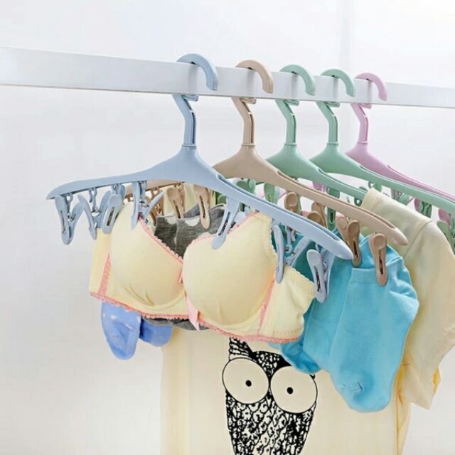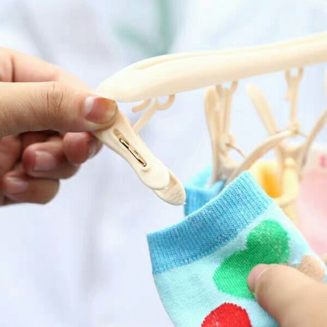 Móc gồm 8 chiếc kẹp nhỏ giúp bạn phơi khăn tay, tất, găng tay, khăn len của bé mà không lo bị rơi giù trời gió to.