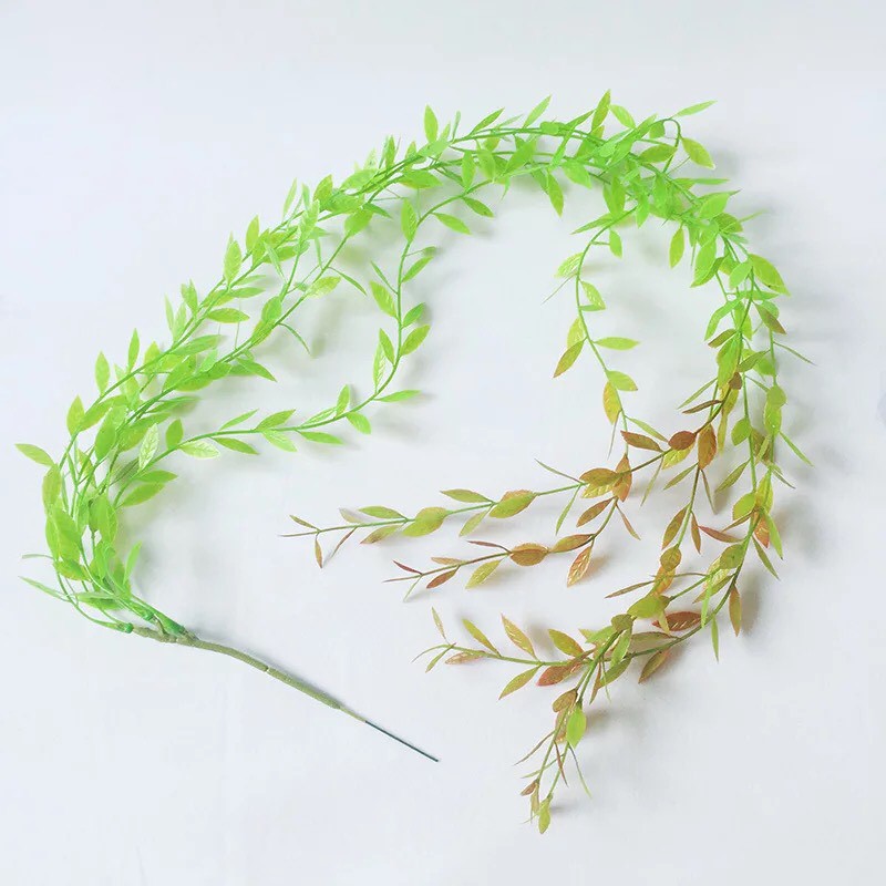 Combo 2 chùm lá liễu nhân tạo 10 sợi rủ dài 1m trang trí ban công, cửa sổ, tường rào xanh mát tự nhiên