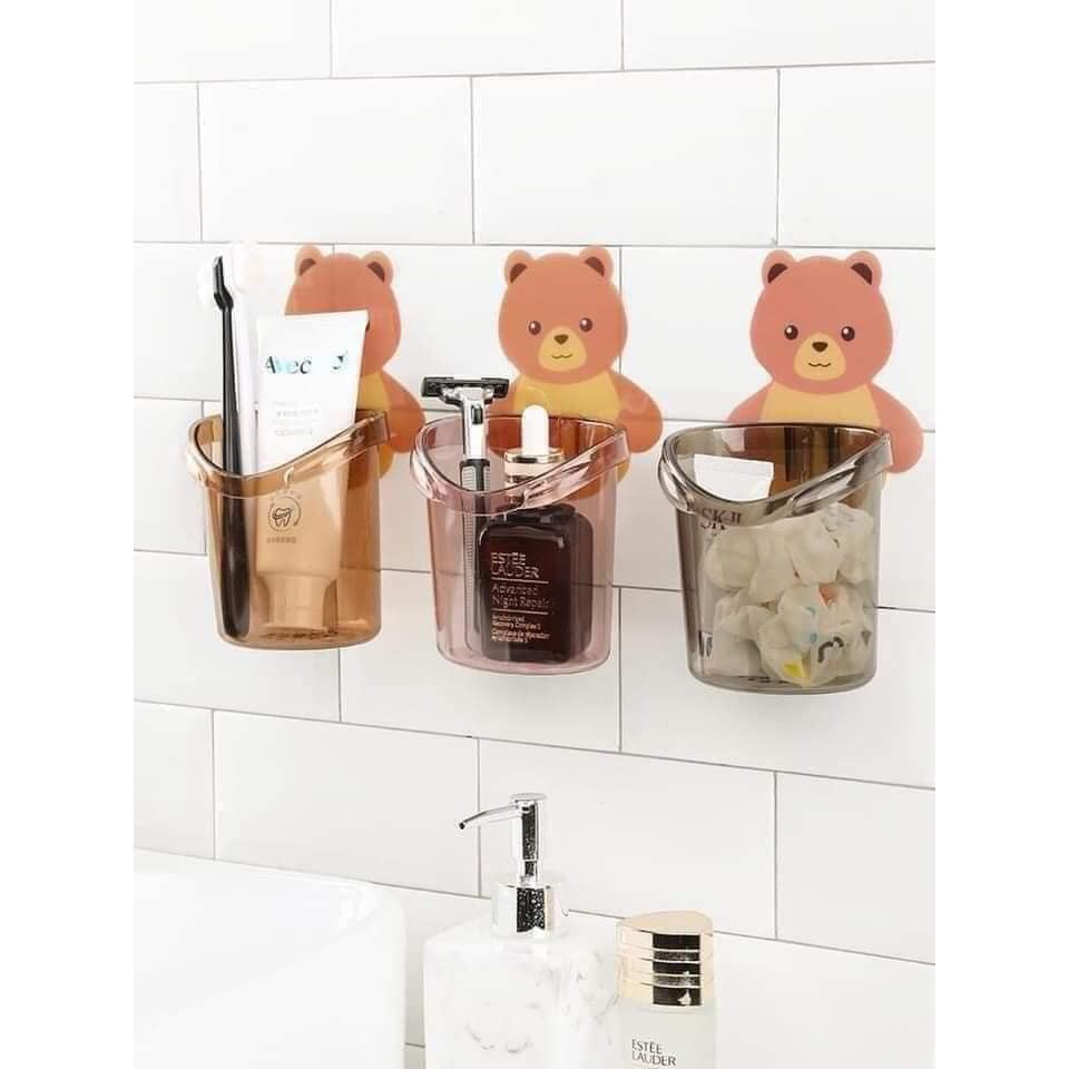 Combo 2 Cốc Gấu Dán Tường, Cốc Đựng Đồ Nhà Tắm Đa Năng