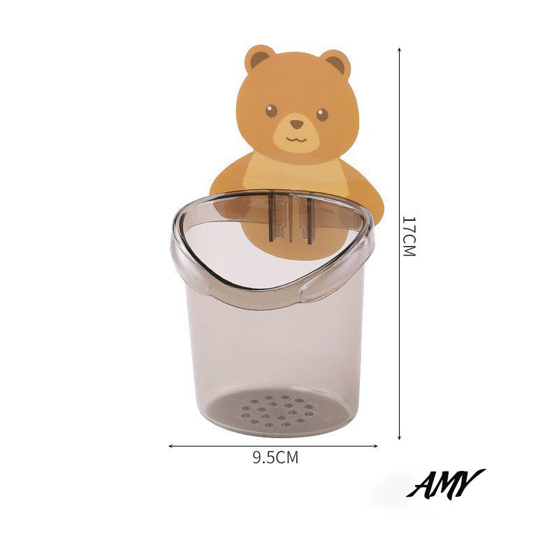 Cốc gấu nâu đựng bàn chải dán tường trong nhà tắm 2 màu 9.5cm*17cm