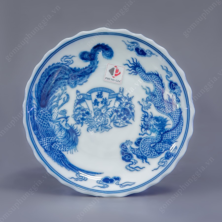 Giới thiệu Combo 2 đĩa trầu cau men Lam Trắng Trơn họa tiết Rồng, đồ thờ Phùng Gia - Gốm sứ Bát Tràng cao cấp
