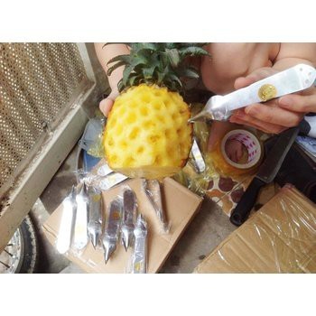 Để gọt dứa bằng dao theo phương pháp truyền thống sẽ khiến ta tốn rất nhiều thời gian.mà bạn lại đang mệt mổi,không muốn phải ngồi từng tí một tỉ mỉ loại bỏ từng cái mắt dứa đáng ghét. Với Dụng Cụ Lấy Mắt Dứa Tiện Dụng sẽ sẽ giúp cho bạn gọt thật sạch và tạo thành những miếng dứa đẹp mắt trong thời gian nhanh chóng.