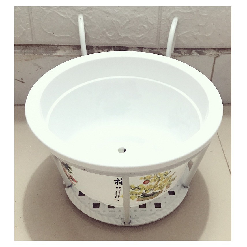 Nhà cửa & Đời sống > Làm vườn > Chậu cây || ComBo 2 GIỎ SẮT Treo Chậu Hoa Ban Công Hình Tròn - Màu Trắng + 2 Chậu Nhựa Trồng Hoa Cây Cảnh Bốn Mùa 250x170Còn hàng