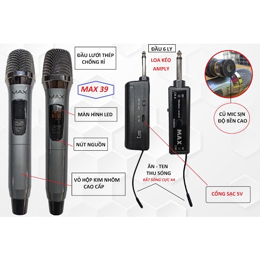 Combo 2 Micro đa năng không dây MAX 39 hát karaoke gia đình cực hay trang bị màn hình LCD hiển thị tần số---------------------------------------