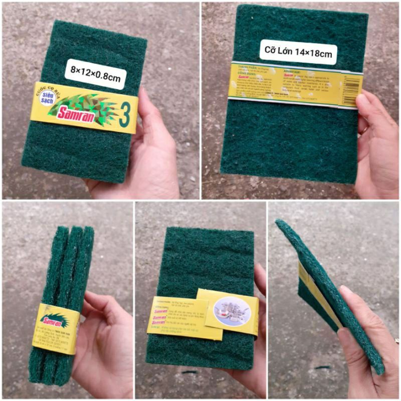 Giới thiệu Combo 2 Miếng cước cọ rửa xoong nồi màu xanh (size nhỏ 8×12cm)