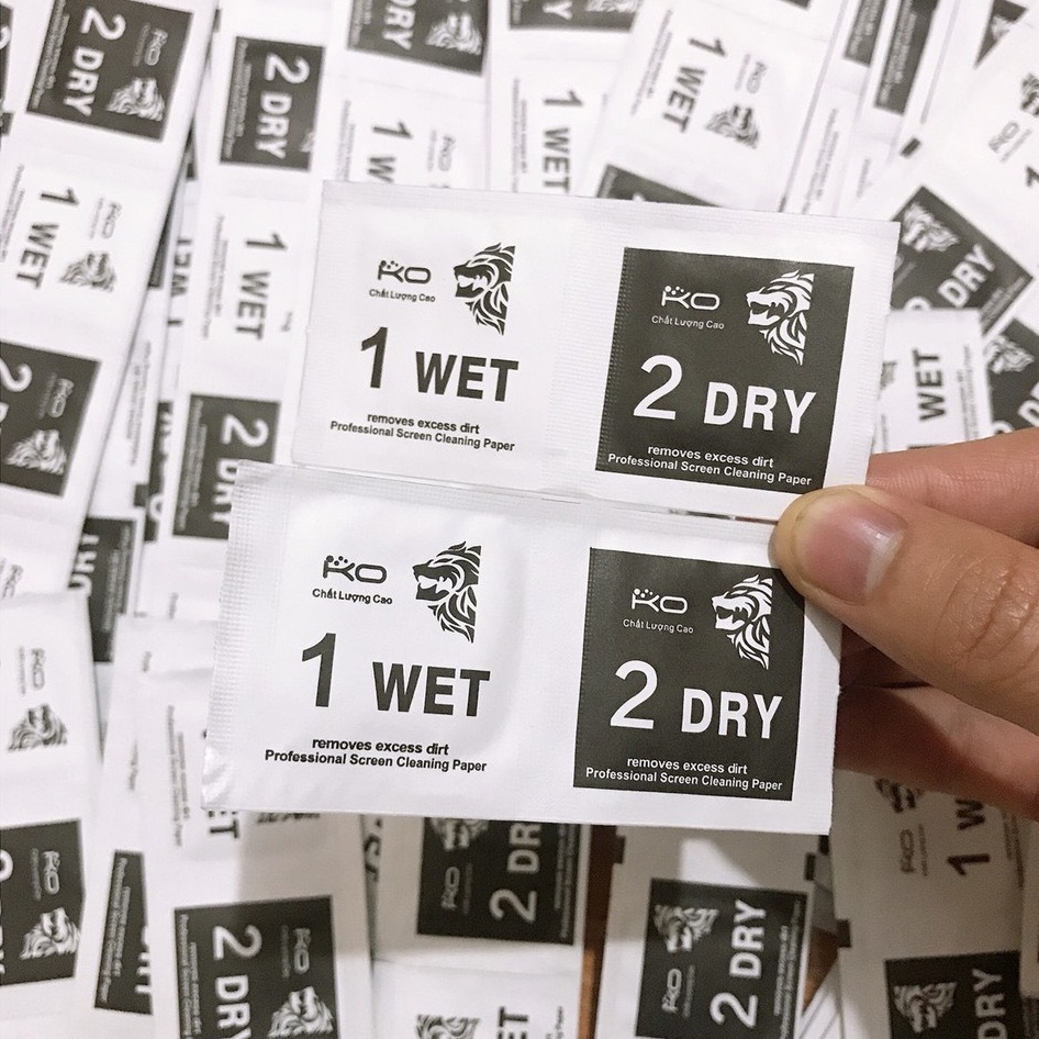 Combo 2 miếng giấy lau dán cường lực (khăn Khô - Ướt, tổng 2 miếng) - Dùng vệ sinh mặt kính màn hình điện thoại