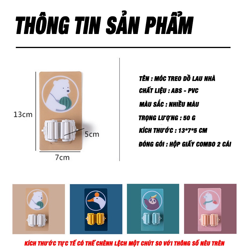 Combo 2 Móc Treo Chổi, Đồ Lau Nhà - Móc Dán Tường Hình Ngộ Nghĩnh - Chịu Lực Tốt , Siêu Dính , Siêu Bền , Siêu Tiện Lợi