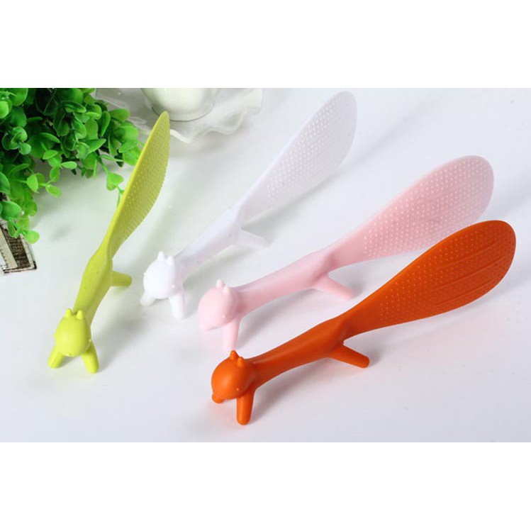 Bàn ăn gia đình sẽ thêm sinh động với chiếc muỗng xới cơm chống dính hình con sóc tinh nghịch này . Thiết kế thông minh giúp ta có thể đặt sản phẩm trên bàn mà không làm cho phần muỗng chạm vào mặt bàn.