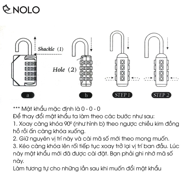 Kéo càng khóa lên rối tiếp tục xoay trở lại vị trí ban đầu. Lúc này mật khẩu mới đã được cài đặt.