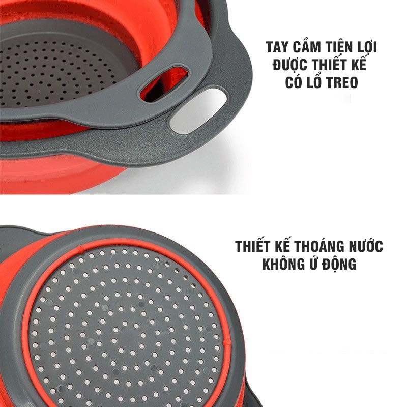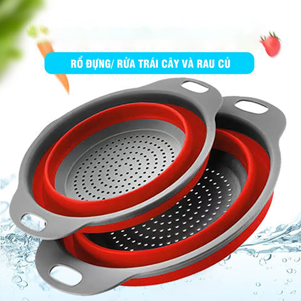 Combo 2 Rổ Silicon Đựng Rửa Trái Cây Và Rau Củ Size Lớn Và Nhỏ Tiện Lợi