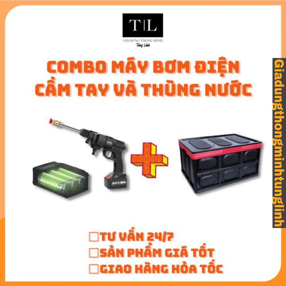 (Combo 2 Sản Phẩm) Máy tăng áp lực nước và Thùng nước gấp gọn - Tăng áp lực nước từ 3 đến 5 lần, 3 chế độ phun linh hoạt
