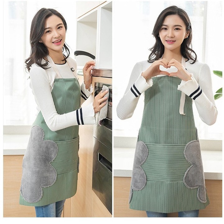 - Tạp Dề Chống Thấm với thiết kế thông minh khi được may kèm vải bông 2 bên hông giúp bạn lau tay nhanh chóng và sạch sẽ khi nấu ăn. Bên cạnh đó chiếc tạp dề này còn thiết kế cho bạn chiếc túi to để đựng điện thoại rất tiện lợi.