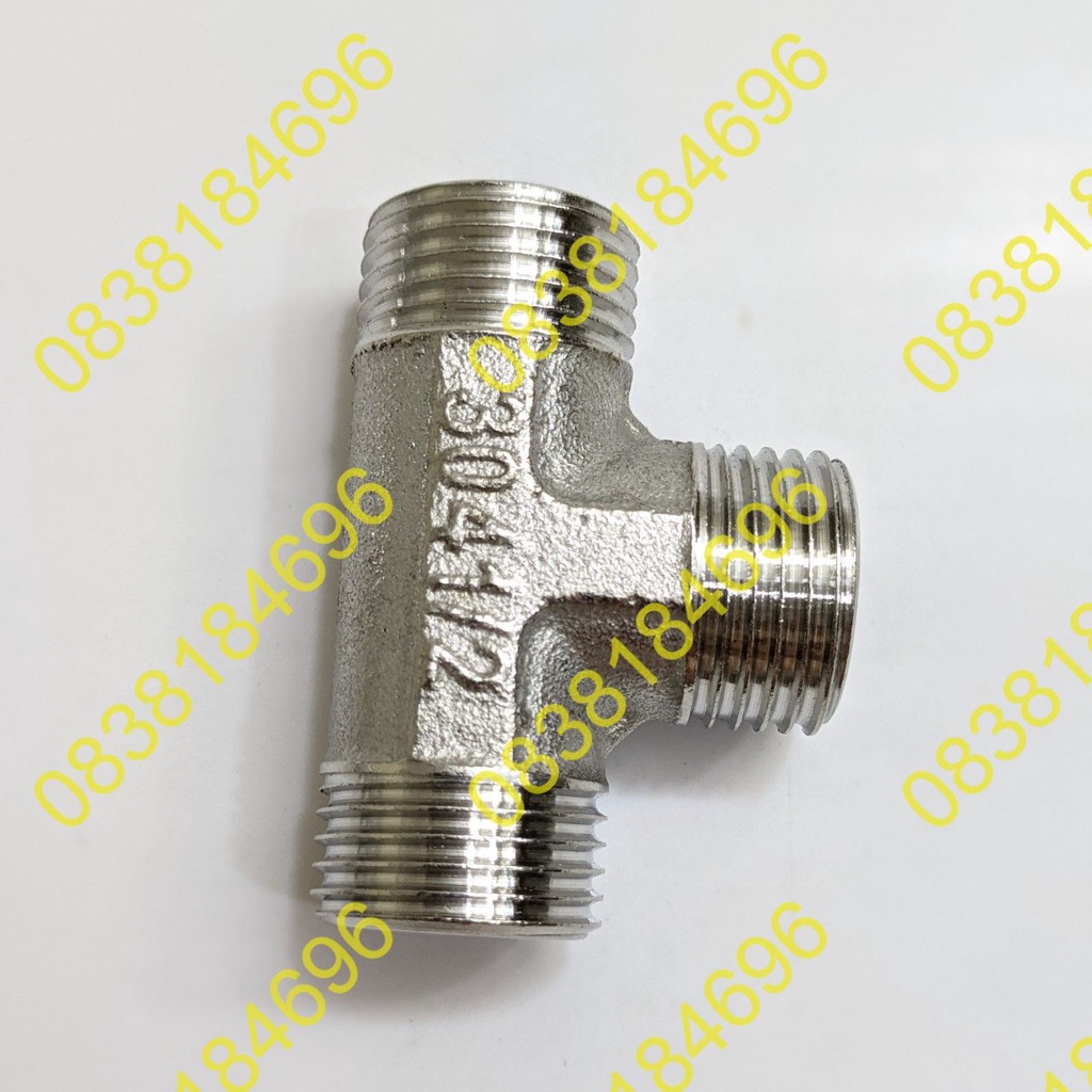 COMBO 2 tê ren inox Ø 21 - 2 đầu ren ngoài - 1 đầu ren trong (1/2-304) ban T 2 đầu răng ngoài 1 đầu răng trong