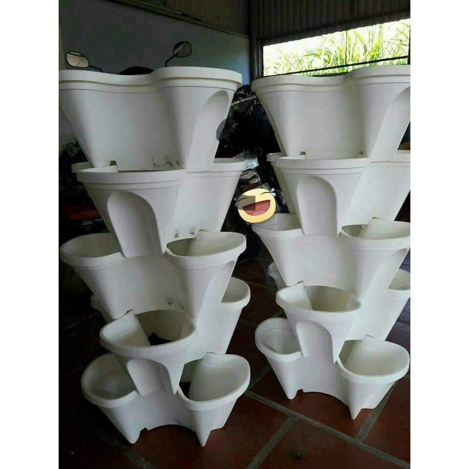 Hiện nay tháp trồng cây (Chậu trồng cây xếp tầng) tại Shop có 2 loại của 2 nhà sản xuất:🍀KIỂU DÁNG 1 - NHÀ SẢN XUẤT NHỰA ANH TÚ: Được Shop bán đã từ rất lâu: Bộ sản phẩm được thiết kế gồm: đế chậu, chậu và màng lưới thông minh ngăn không cho đất rơi xuống và tạo thành 1 ngăn chứa nước dưới đáy chậu giúp cho cây luôn duy trì được độ ẩm cần thiết.