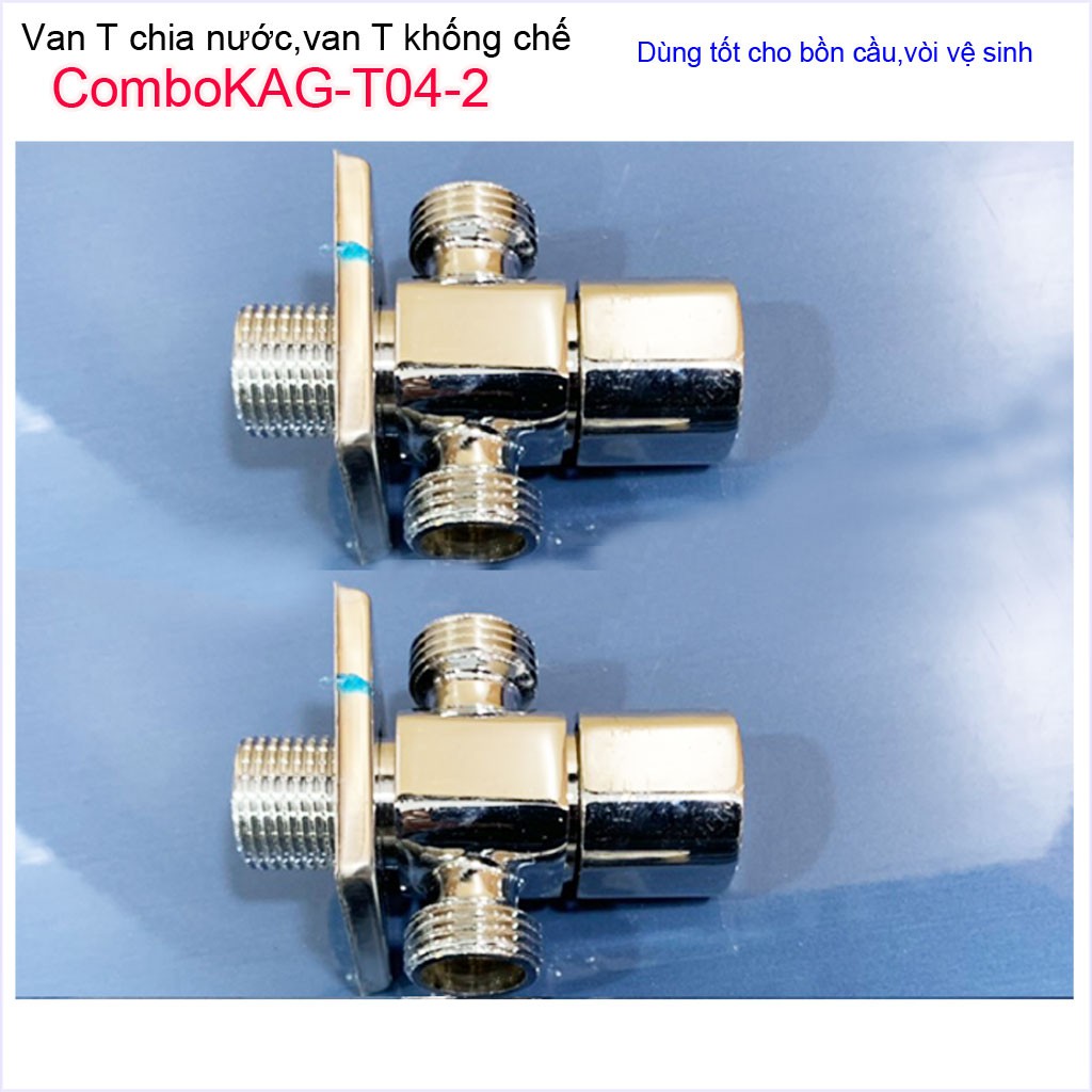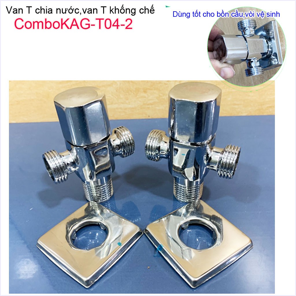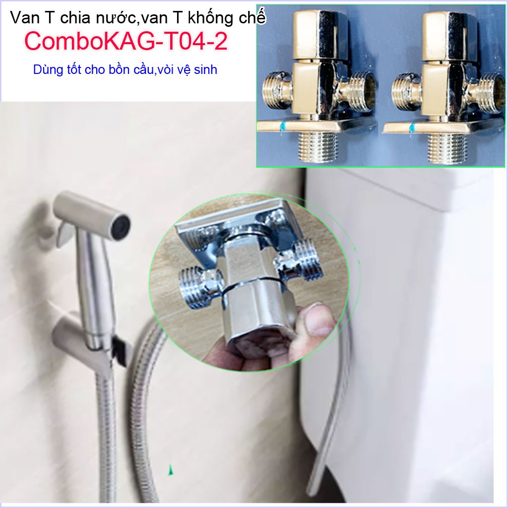 Combo 2 van T chia nước giảm áp ComboKAG-T04 cao cấp, van T chia nước bồn cầu và vòi xịt, T nối nước vòi xịt siêu bền