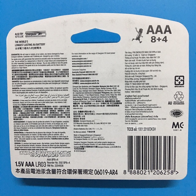 Thiết Bị Điện Gia Dụng > Pin || Combo 2 Vỉ Pin AAA Energizer Max E92BP8+4 Vỉ 12 Viên Made in Singapore Chính Hãng DKSH Việt Nam Nhập KhẩuCòn hàng