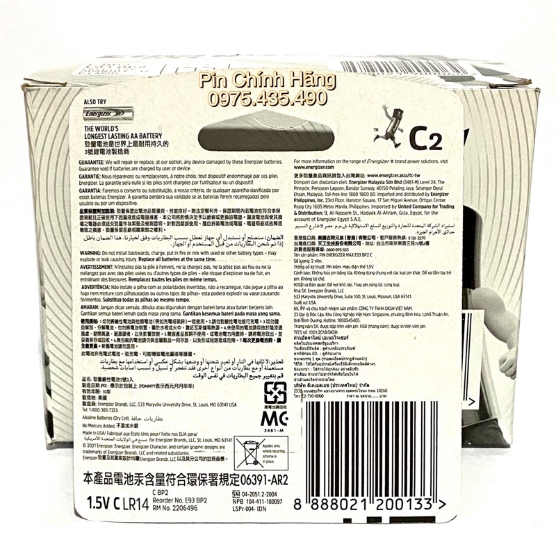 Pin trung C Energizer hay còn gọi với cái tên khác là pin LR14, pin trung hay là pin C, pin E93. Pin LR14 với chất liệu Alkaline giúp dòng điện ổn định, chỉ số hao pin thấp, chống rò rỉ, không chảy nước, hạn chế hư hỏng tới thiết bị. Pin sử dụng tốt trong vòng 10 năm nên bạn yên tâm khi mua về mà chưa sử dụng đến pin.